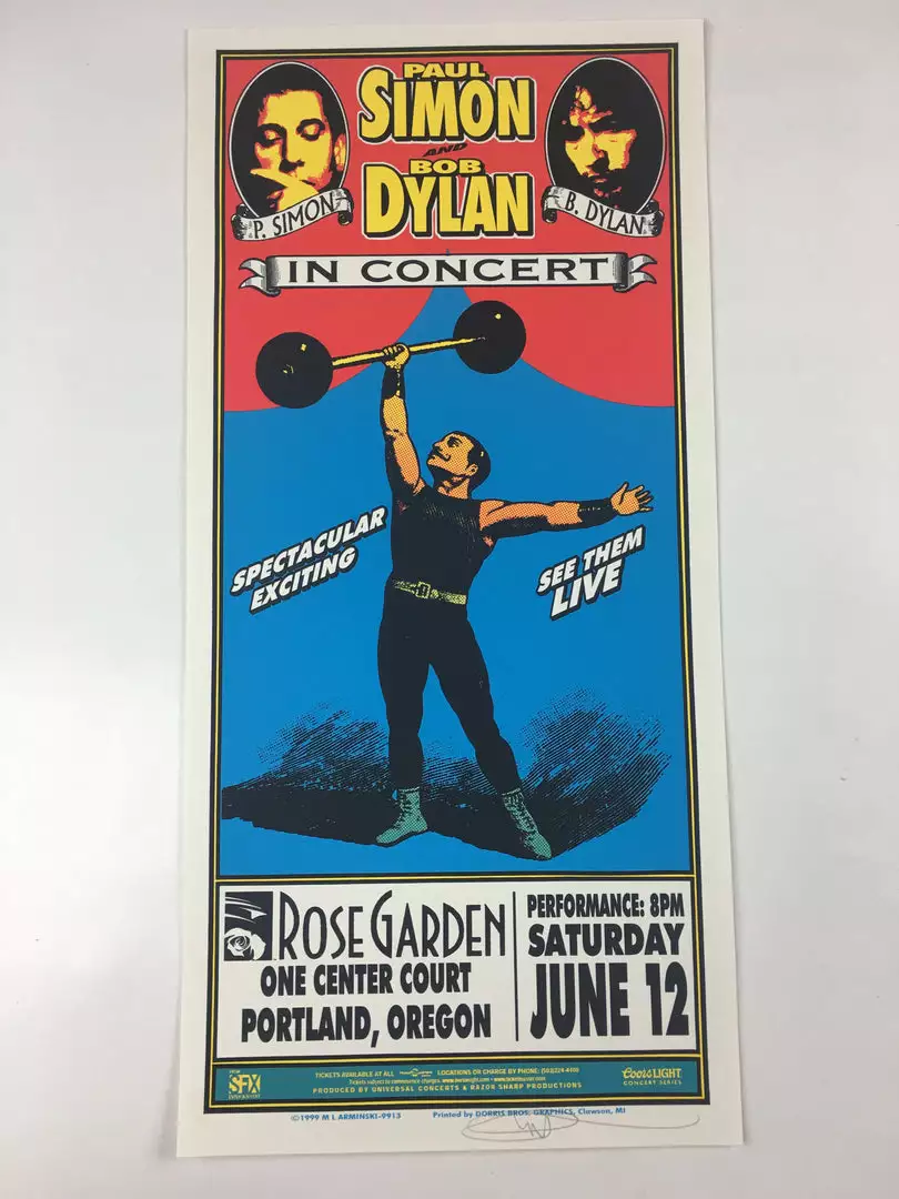 Gig Posters Bob Dylan Paul Simon – 1999 Mark Arminski Poster Portland, OR Rose Garden
