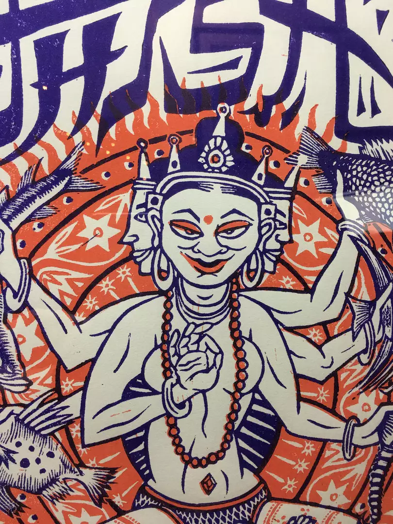Type: Limited edition linocut poster on recycled paper, signed and numbered out of 500 printed. Ultra rare poster! Framed using archival framing materials, will ship framed.