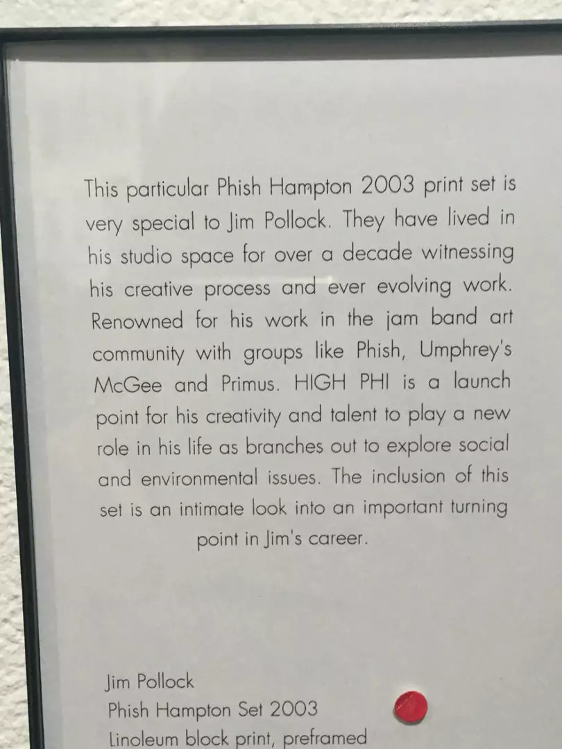 From HIGH PHI: “The Phish posters included below are very special to Jim. They have lived in his studio space for over a decade witnessing his creative process and ever evolving work. This show is definitely an intimate look into where Jim is right now in his career and we cannot wait to share it with you!”