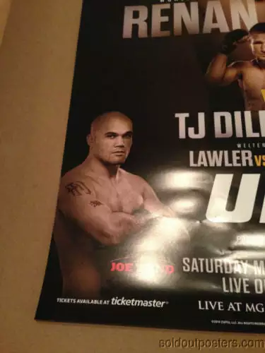 Promo poster for the UFC 173 PPV between Renan Barao vs. TJ Dillshaw ans Lawler vs. Ellenberger. This fight took place at the MGM Grand in Las Vegas NV on Saturday May 24th 2014. This poster shows slight signs of wear but is in overall good shape. Please see pics and ask any questions about condition prior to purchasing. // <![CDATA[